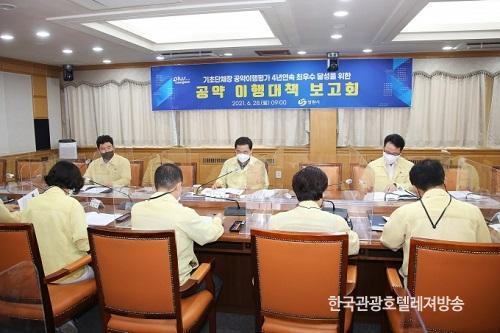 ½Ã´Â 28ÀÏ ½ÃÁ¤È¸Àǽǿ¡¼ ¡®2021³â »ó¹Ý±â °ø¾à ÀÌÇà´ëÃ¥º¸°íȸ¡¯¸¦ °³ÃÖÇßÀ¸¸ç, À̹ø º¸°íȸ¿¡¼ Ç㼺¹« ½ÃÀåÀ» ºñ·ÔÇØ °ø¾à »ç¾÷À» ´ã´çÇÏ´Â ºÎ¼Àå µî 10¿© ¸íÀÌ Âü¼®ÇØ °ø¾à»ç¾÷º° ÁÖ¿ä ¼º°ú¿Í ÃßÁø»óȲ µîÀ» °øÀ¯Çϰí, ÀÌÇà·üÀÌ ´Ù¼Ò ÀúÁ¶ÇÑ ÀϺΠ»ç¾÷ÀÇ ¹®Á¦Á¡À» ½ÉÃþ ºÐ¼®ÇÏ´Â ÇÑÆí, Çö½ÇÀûÀÎ ´ë¾È ¸¶·ÃÀ» À§ÇÑ ¹æ¾ÈÀ» »ìÇDZ⵵ Çß½À´Ï´Ù.