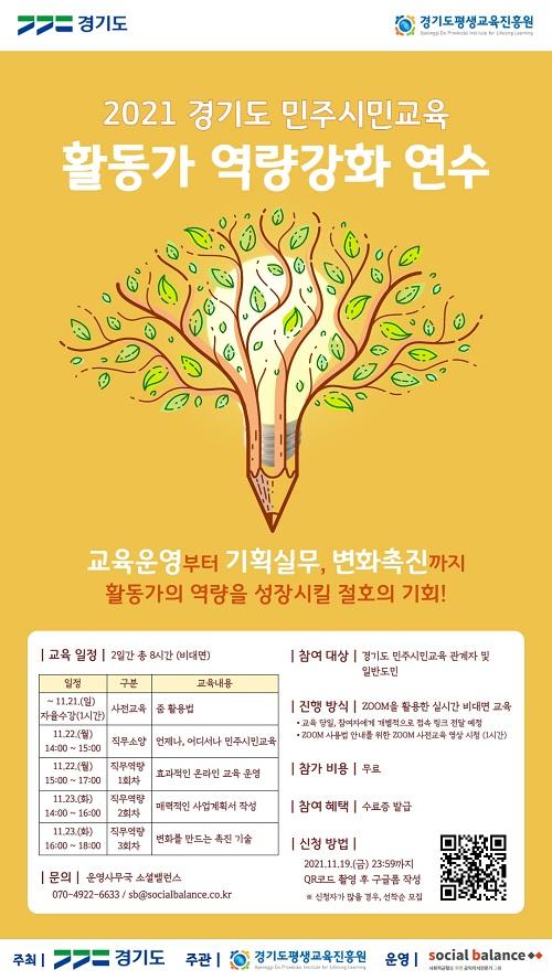 [È£ÅÚ°ü±¤·¹Á®½Å¹®´º½º=¹èÁöÀ± ±âÀÚ] °æ±âµµÆò»ý±³À°ÁøÈï¿øÀÌ ¿À´Â 22Àϰú 23ÀÏ ÀÌÆ²°£ µµ³» ¹ÎÁֽùα³À° Ȱµ¿°¡µéÀÇ ¿ª·® °­È­¸¦ À§ÇÑ ¿Â¶óÀÎ ¿¬¼ö¸¦ ÁøÇàÇÕ´Ï´Ù. ¿ÃÇØ ¿¬¼ö´Â ¹ÎÁֽùα³À°¿¡ ´ëÇÑ ±âº»¼Ò¾ç ±³À°°ú Äڷγª19 »óȲÀ¸·Î ±ÞÁõÇÑ ¿Â¶óÀÎ ±³À°ÀÇ Çʿ伺¡¦
